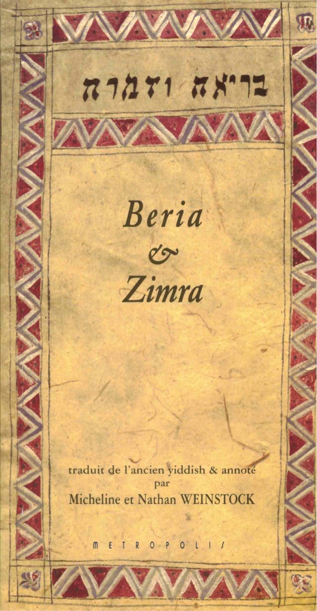 L’histoire de Beria et de Zimra est un conte yiddish qui date de la Renaissance. Elle constitue en quelque sorte le pendant juif du mythe d’Orphée et Eurydice.
