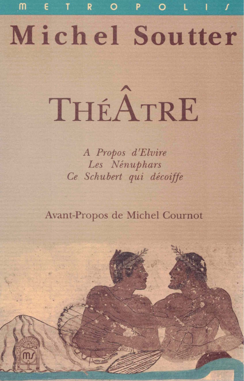 Michel Soutter (1932-1991) est principalement connu comme l’un des plus importants cinéastes genevois, avec des films tels que « James ou pas », « Les Arpenteurs », ou « Repérages », mais il a été aussi un homme de théâtre à part entière. Voici éditées pour la première fois trois de ses pièces dont le propos est une variation autour du thème du triangle amoureux : une relecture tendre et grave de L’Odyssée (A propos d’Elvire) où Ulysse est agent d’assurance, une tragi-comédie poétique sur l’éternelle jalousie (Les Nénuphars), et enfin, une vision incongrue de l’infidélité (Ce Schubert qui décoiffe).